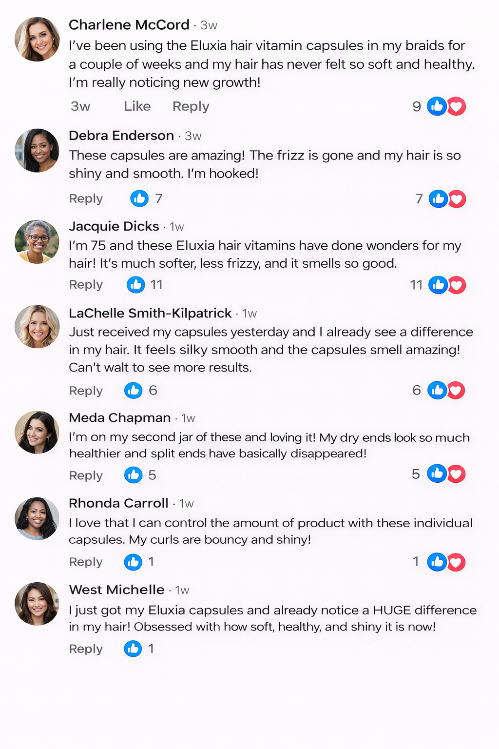Based on a 150-user survey of Eluxia Hair Vitamin Oil users over 4 weeks.